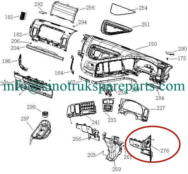 Piezas de la cabina de Sinotruk, Lista de piezas de repuesto ,
