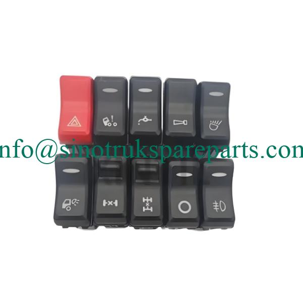 Sinotruk Howo Th7 Cab Work Work Light Rocker Switker (WG9925582004) – Interrupteur électrique coté IP65 à service lourd compatible avec les camions T7H / T5G / Sitrak. Assure un contrôle d'éclairage fiable dans des conditions extrêmes. ISO / TS16949 certifié, 12-garantie du mois, Remises de commande en vrac disponibles
